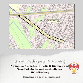 Die Gemeinde Südbrookmerland plant den Ausbau des Ritzweges auf einer Länge von rd. 680m. Die Maßnahme beinhaltet den Umbau der Fahrbahn sowie den Neubau eines Rad- und Gehweges.