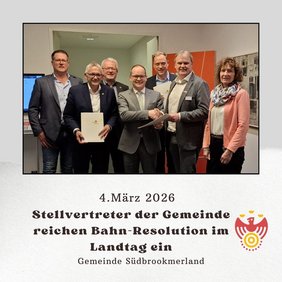 Im Mittelpunkt des Gesprächs stand die geplante Reaktivierung der Bahnstrecke zwischen Aurich und Abelitz für den öffentlichen Personennahverkehr. Die Vertreter der Gemeinde Südbrookmerland machten dabei deutlich, dass die Kommune als besonders betroffene Gemeinde aus ihrer Sicht zu spät in das laufende Verfahren eingebunden worden sei. Zudem wurden die Inhalte der vorliegenden Machbarkeitsstudie als teilweise sehr einschneidend, unverhältnismäßig und schwer vertretbar bewertet.