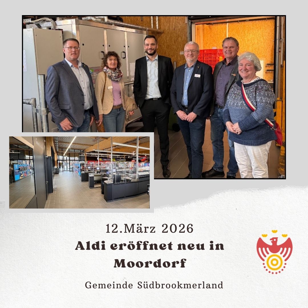Im Zuge dieser "internen Eröffnung" bestand für geladene Gäste, neben etwaigen Grußworten, auch die Möglichkeit, sich dieses Neubau-Projekt in der Gesamtheit anzuschauen. Vertretend für die Gemeinde Südbrookmerland waren die Ratsvorsitzende Sophia Ulferts-Dirksen, Mitarbeiter des Rathauses sowie der Bürgermeister Thomas Erdwiens anwesend, die an einem Rundgang durch den neuen Aldi-Markt teilnahmen. Begleitet wurden sie vom zuständigen Regionalleiter Sebastian Sobolewski, der spannende Einblicke hinter die Kulissen des Marktes gewährte.