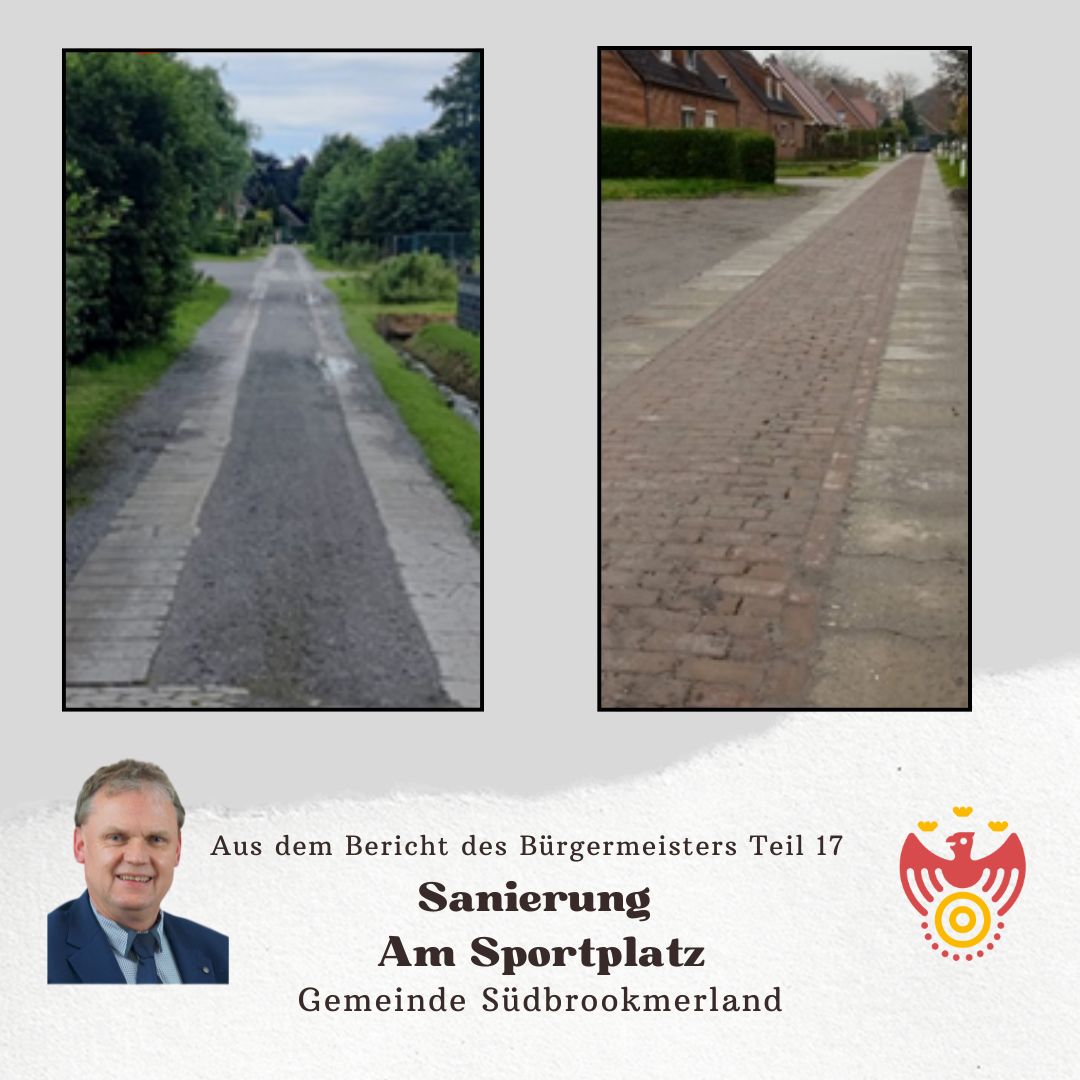 Ein Beispiel für die erfolgreich durchgeführten Arbeiten ist die Sanierung der Straße "Am Sportplatz" in Moorhusen, die durch unseren Bauhof im Jahr 2021 realisiert wurde.