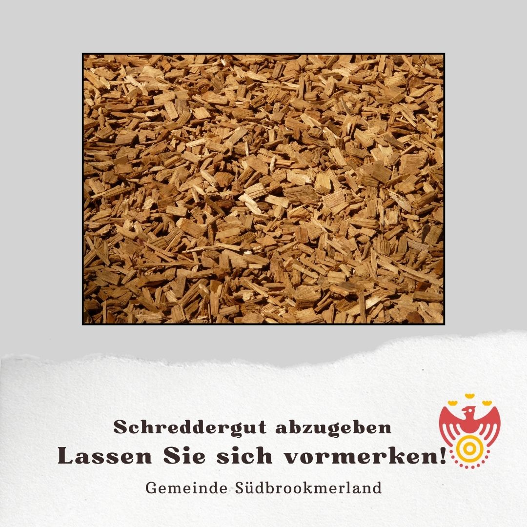 Sie möchten sich für 5 m³ Schreddermaterial bei der Gemeinde Südbrookmerland vormerken lassen.