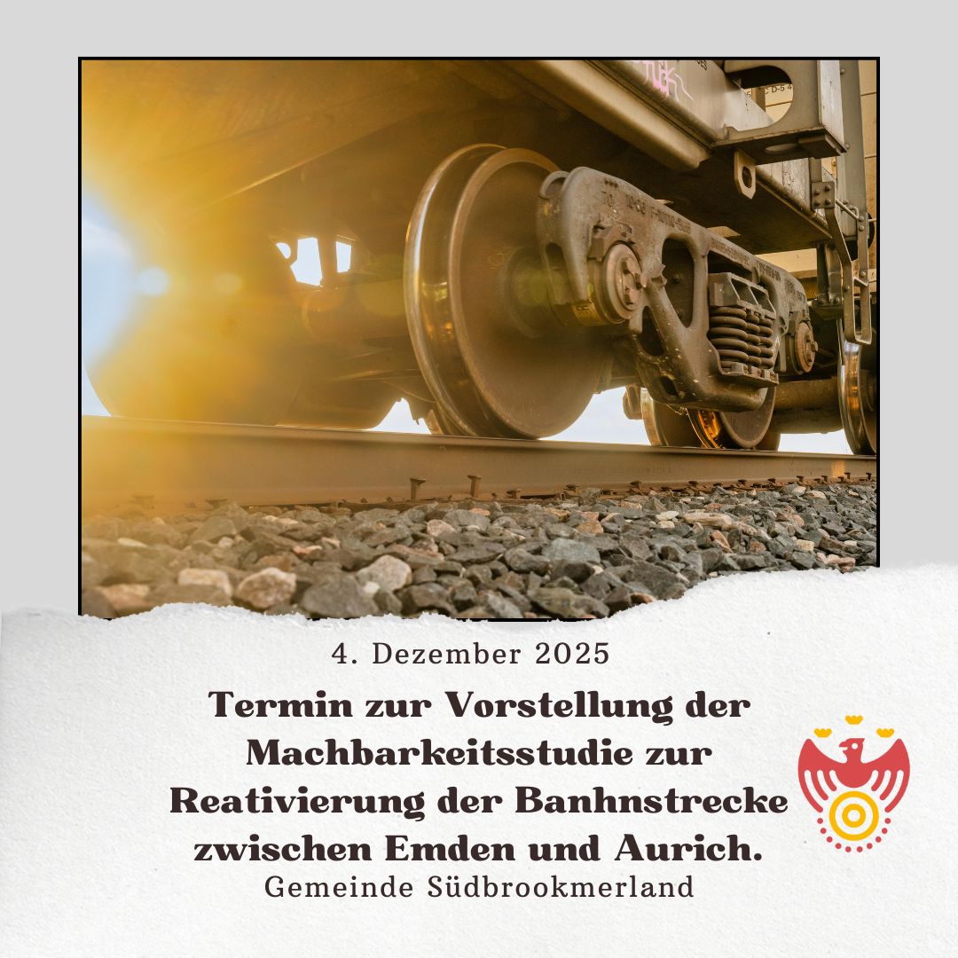 Die vom Landkreis Aurich beauftragte "Bahnstudie" wird am 4. Dezember 2025 der Öffentlichkeit vorgestellt. Interessierte Bürgern erhalten die Möglichkeit, Einblick in die bisher erarbeiteten Ergebnisse der Studie zu erhalten.
