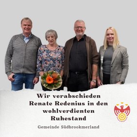 Ab dem 01.01.2026 beginnt offiziell ihr Ruhestand, und wir wünschen Renate, dass sie diesen neuen Lebensabschnitt in vollen Zügen genießen kann.